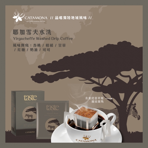 經常喝咖啡的人對耶加雪夫一定不陌生,它是位於衣索匹亞中西部的一個城鎮,因盛產咖啡而為人熟知。除了咖啡外,衣索匹亞也孕育著許多各具特色的動物,像是經常可在動物園看到的細紋斑馬便生長在衣索匹亞及肯亞的部分地區。細紋斑馬為體型最大的斑馬,細緻的紋路有著最美斑馬之稱,但也因此其皮毛能販售到極高的價格,成為不法人士覬覦的目標,偷獵再加上棲息地破壞等因素細紋斑馬已屬瀕危動物。現今,咖啡已是隨處可得的品味,但在您品嚐的同時地球上卻有許許多多的生態面臨失去便不復存在的威脅,非常需要您美麗的心加以愛護。